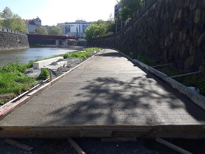 Venkovní zpevněná plocha – náplavka na Radbuze v Plzni – Anglické nábřeží