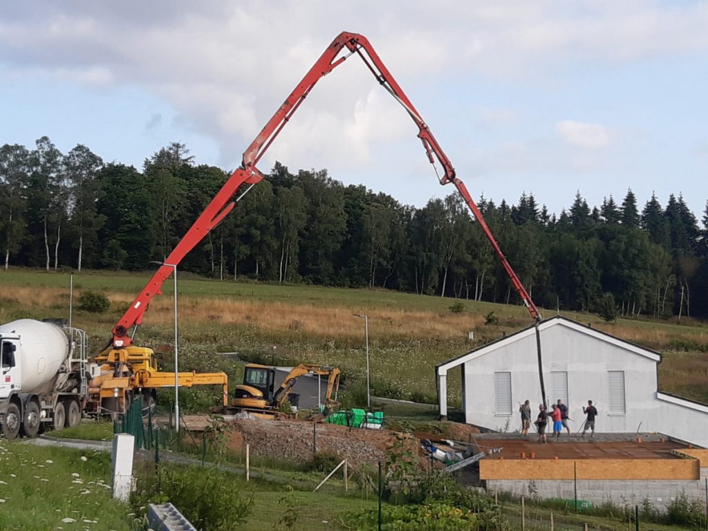 Základová deska Nebílovy-betonáž desky pod dřevostavbu